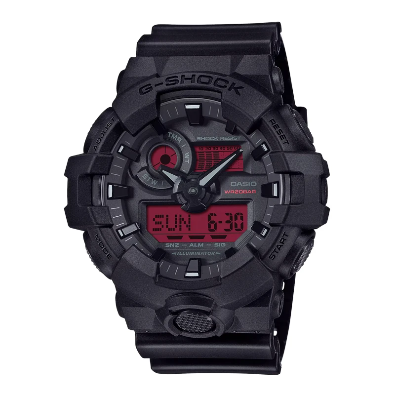 Gå all‑in på attityd, styrka och kompromisslös design med G‑SHOCK Black & Red Collection – en serie som tar den ikoniska G‑SHOCK‑estetiken till en ny, intensiv nivå. Det här är klockan för dig som vill signalera kraft, mod och en tydlig närvaro, oavsett om du befinner dig på gymmet, i vardagsstressen eller ute på äventyr.