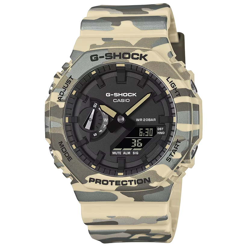 Modeframåt och kamouflagecool — den alltid populära, slimmade GA‑2100 får ett originellt G‑SHOCK‑kamouflagemönster som ger en djärv accent till vilken stil som helst.