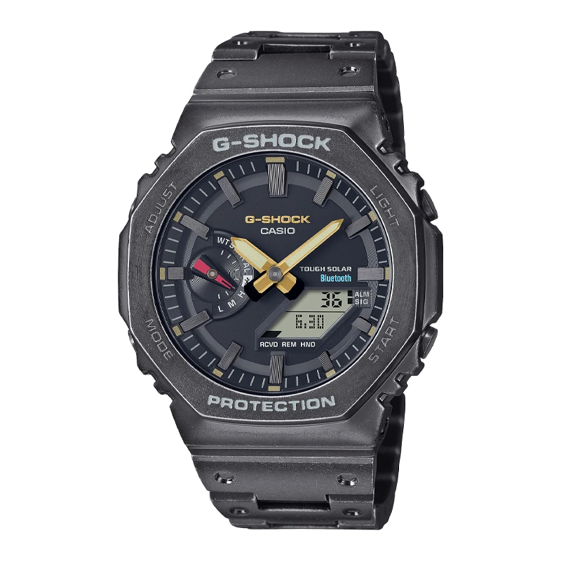 Troget G‑SHOCKs tuffa identitet får denna specialutgåva av den fullmetalliska analoga GM‑B2100 en unik åldrad finish som ger en vintagekänsla åt den ikoniska oktagonformen ett arv från den allra första G‑SHOCK‑modellen, DW‑5000. Röda, blå och gyllene detaljer på urtavlan hyllar dessutom G‑SHOCKs ursprungliga design.