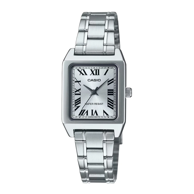 Boetten är tillverkad i rostfritt stål, vilket ger en vacker glans och en hållbarhet som gör att klockan känns lika lyxig efter flera års användning. Med måtten 31 × 22 × 7.5 mm är den nätt och elegant, men den raka formen gör att den ändå har en närvaro på handleden. Den väger 58 gram – tillräckligt för att kännas gedigen, men fortfarande lätt nog för att bäras hela dagen utan att du tänker på det.