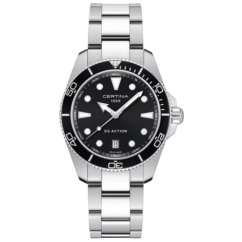 Certina DS Action 40 mm är en tidlös dykarklocka där schweizisk precision möter modern funktionalitet. Inspirerad av havets kraft och klarhet är detta en klocka skapad för vattennära liv men med ett uttryck som fungerar lika bra i vardagen.