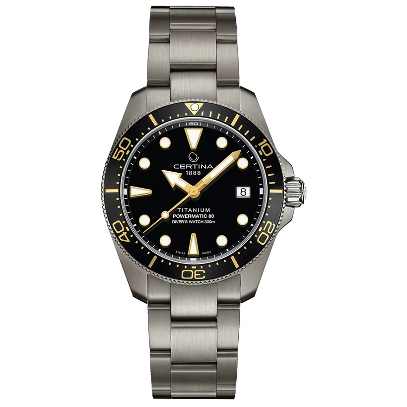 Med en vattentålighet på 300 meter och ISO 6425:2018-certifiering uppfyller denna modell de högsta kriterierna för professionella dykarklockor. DS Action Diver utgör också en milstolpe som den första Certina-klockan med den senaste utvecklingen av DS-systemet: “New DS Concept Extreme Shock Resistance”.