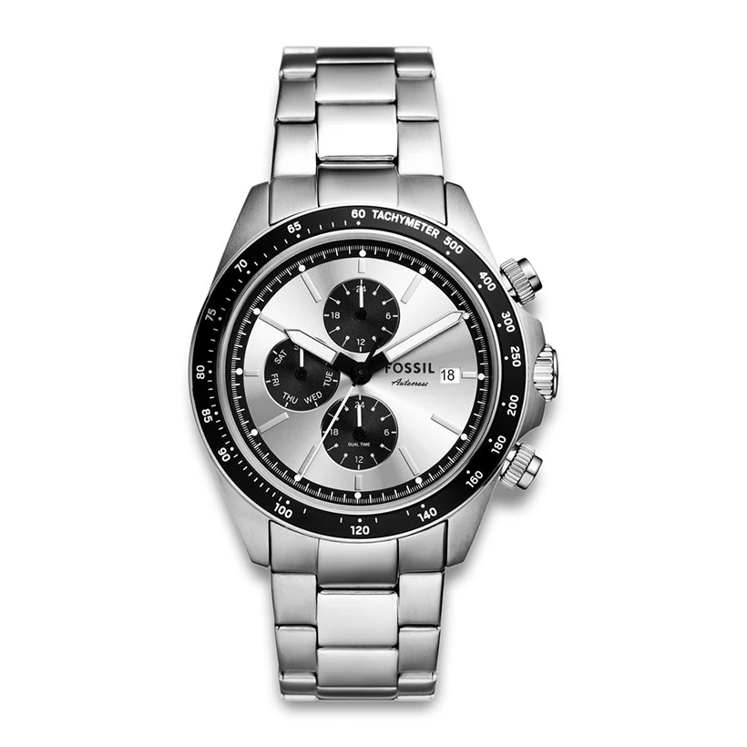 Fossil Autocross – modern racinginspirerad klocka Autocross tar den klassiska racingklockan in i modern tid med en sportig och stilren design. Den silverfärgade sunray-urtavlan med svarta sub-dials skapar en snygg kontrast mot boett och armband i rostfritt stål. Klockan på 42 mm drivs av ett kvarts-multi-eye urverk, som håller koll på både dubbel tidszon och veckodag, vilket ger extra funktionalitet för vardagens alla äventyr. Perfekt för dig som vill kombinera sportig estetik med praktisk precision.