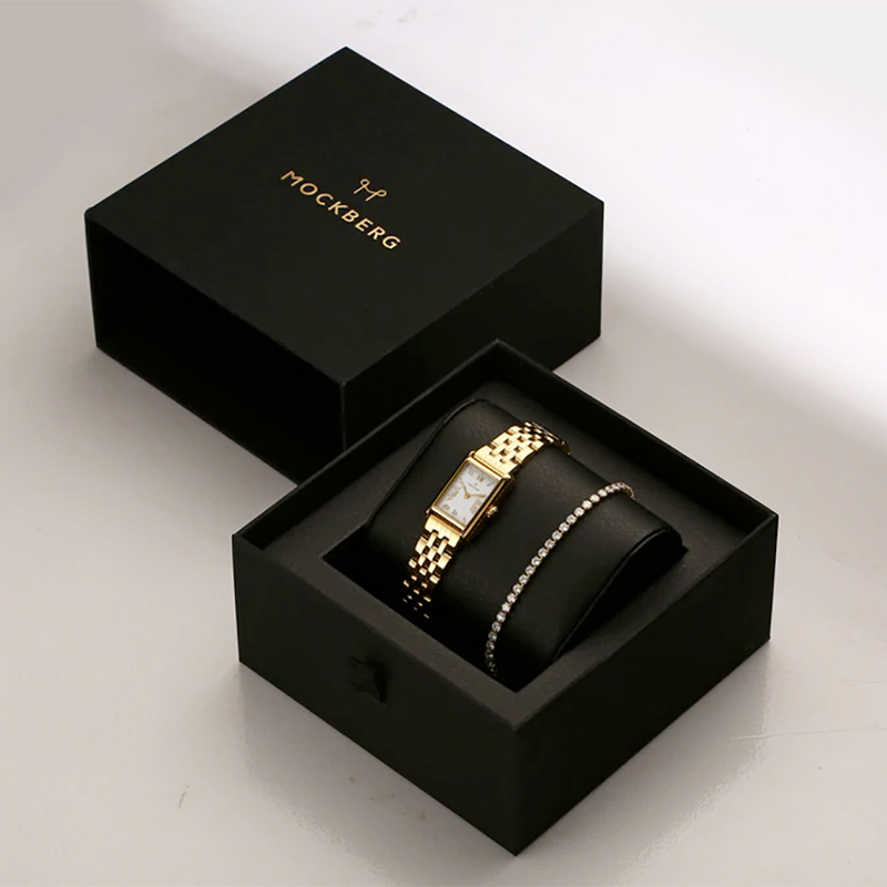 Timeless klockan i en vacker combo box med ett tennisarmband. Armbandet är guldfärgat i mässing med en storlek på 15+3 cm.