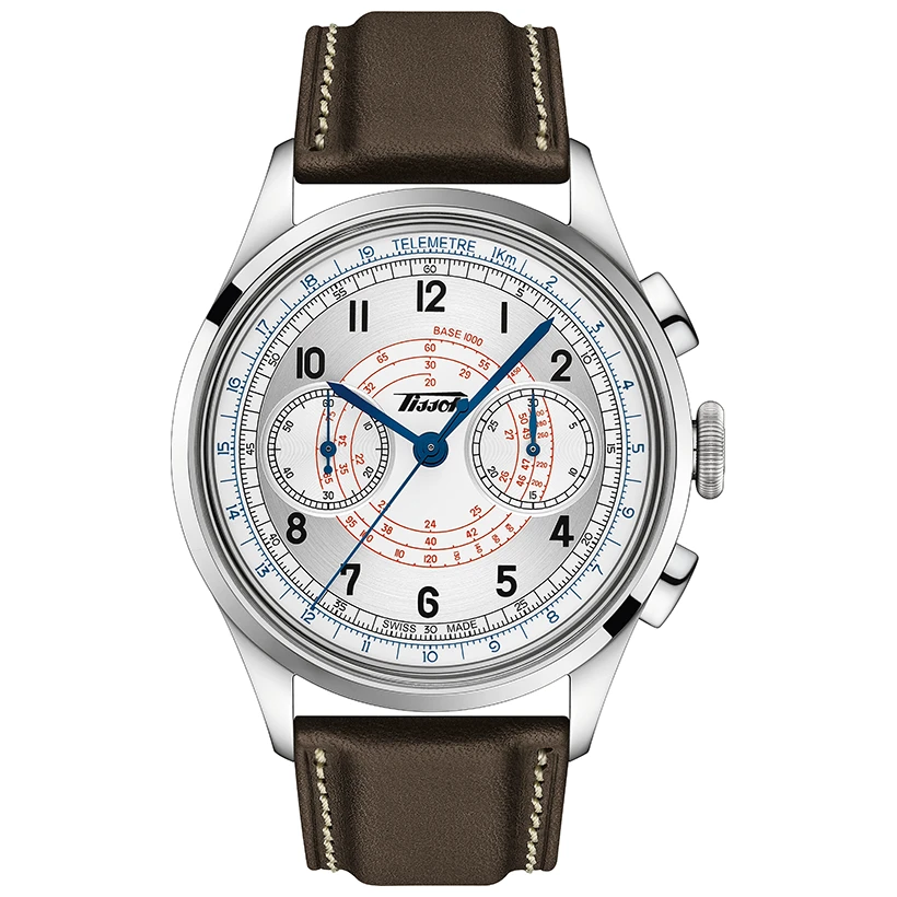 Den silverfärgade urtavlan med arabiska siffror skapar ett sofistikerat uttryck som förstärks av kronografens rena symmetri. Med sitt eleganta läderarmband och justerbara passform är modellen skapad för män som uppskattar detaljer som håller över tid och som söker ett armbandsur där design, historia och funktion möts i perfekt balans. Telemeter 1938 är en exklusiv herrklocka som representerar Tissots betydelsefulla arv och samtidigt levererar en modern premiumupplevelse.