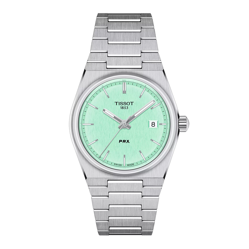 Den slanka, avsmalnande boetten i 316L rostfritt stål och det integrerade armbandet ger klockan en elegant, smidig siluett som sitter bekvämt på handleden. Storleken på 35 mm är identisk med originalet från 1978 – en hyllning till den tidlösa design som gjort PRX till en favorit i generationer.
