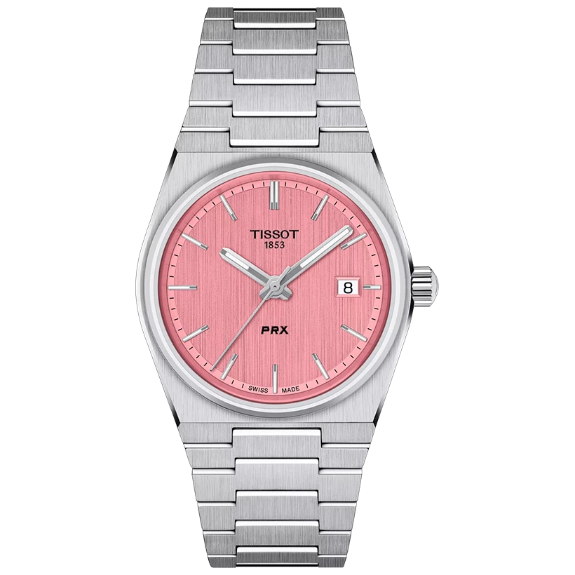Den slimmade tonneauformade boetten och det integrerade stålarmbandet ger PRX dess omisskännliga, tidlösa silhuett. Den rosa urtavlan tillför ett fräscht och uttrycksfullt inslag som samtidigt behåller klockans sofistikerade balans. Rena index och tydliga visare säkerställer god läsbarhet, medan den kompakta storleken på 35 mm identisk med originalet från 1978 – gör modellen både elegant och bekväm på handleden.