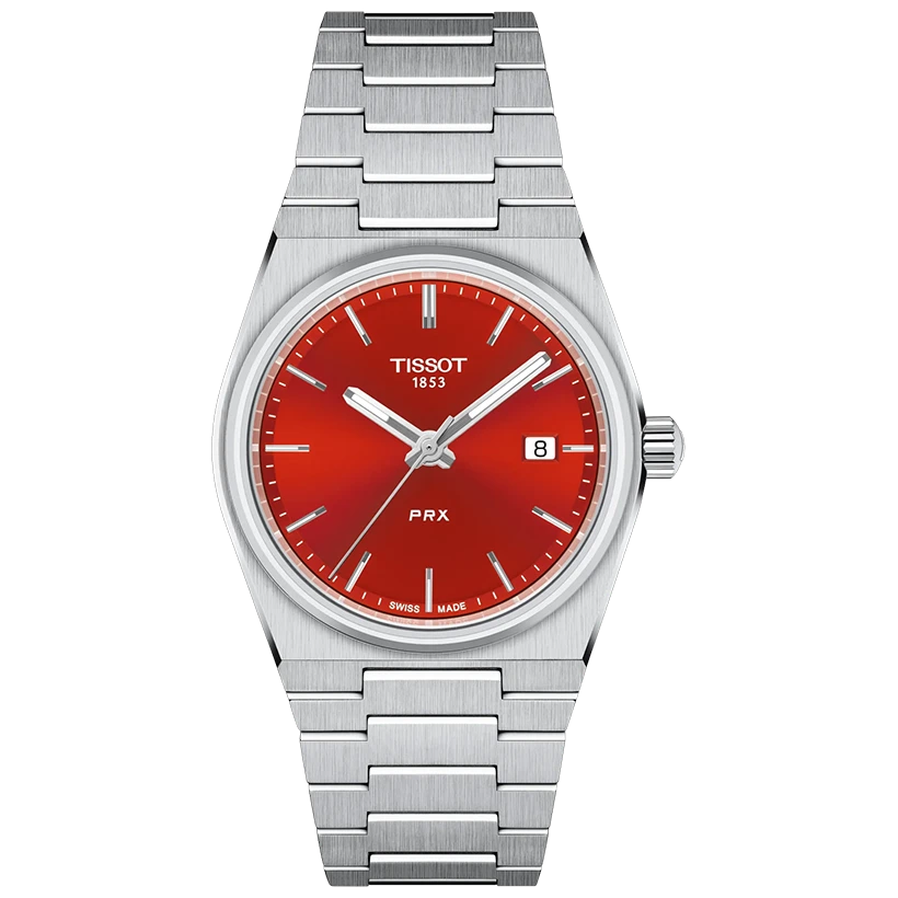 Den slimmade, tonneauformade boetten och det integrerade stålarmbandet ger PRX dess karakteristiska retroprofil. Den röda urtavlan sätter tonen med ett djärvt och samtidigt sofistikerat uttryck, där rena index och tydliga visare bidrar till utmärkt läsbarhet. Med sina 35 mm samma storlek som originalet från 1978 sitter klockan perfekt på handleden och passar både dig som föredrar ett nätt format och dig som uppskattar äkta vintageproportioner.
